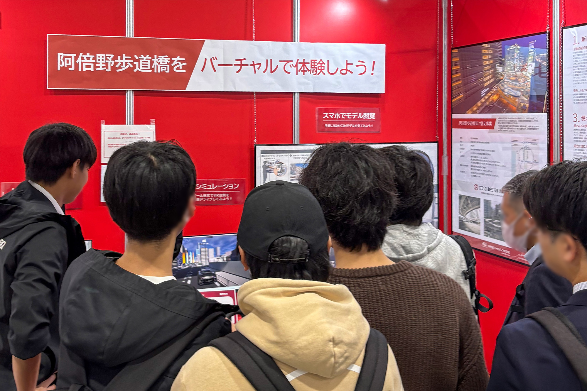 今回のブース展示では、CFKが架け替え事業を行った阿倍野歩道橋(2014年グッドデザイン賞受賞)を3Dモデル化して、様々なICT活用を体験できるブースとしました。