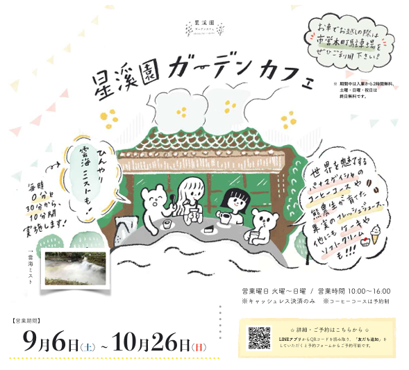 実証運行の西端に位置する星溪園では、期間限定で『星溪園ガーデンカフェ』がオープンしています。