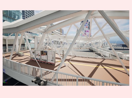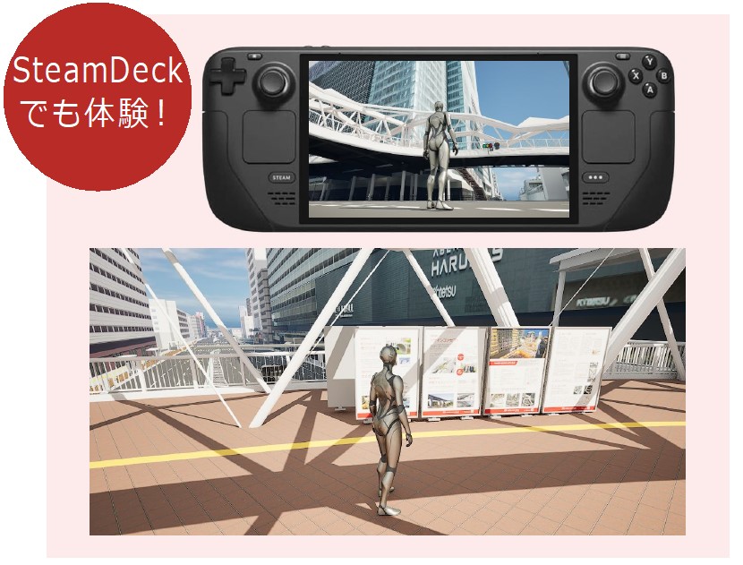 今年は、阿倍野歩道橋を3Dモデル化して、運転シミュレーションなどのICT体験ができるブースとなっています。