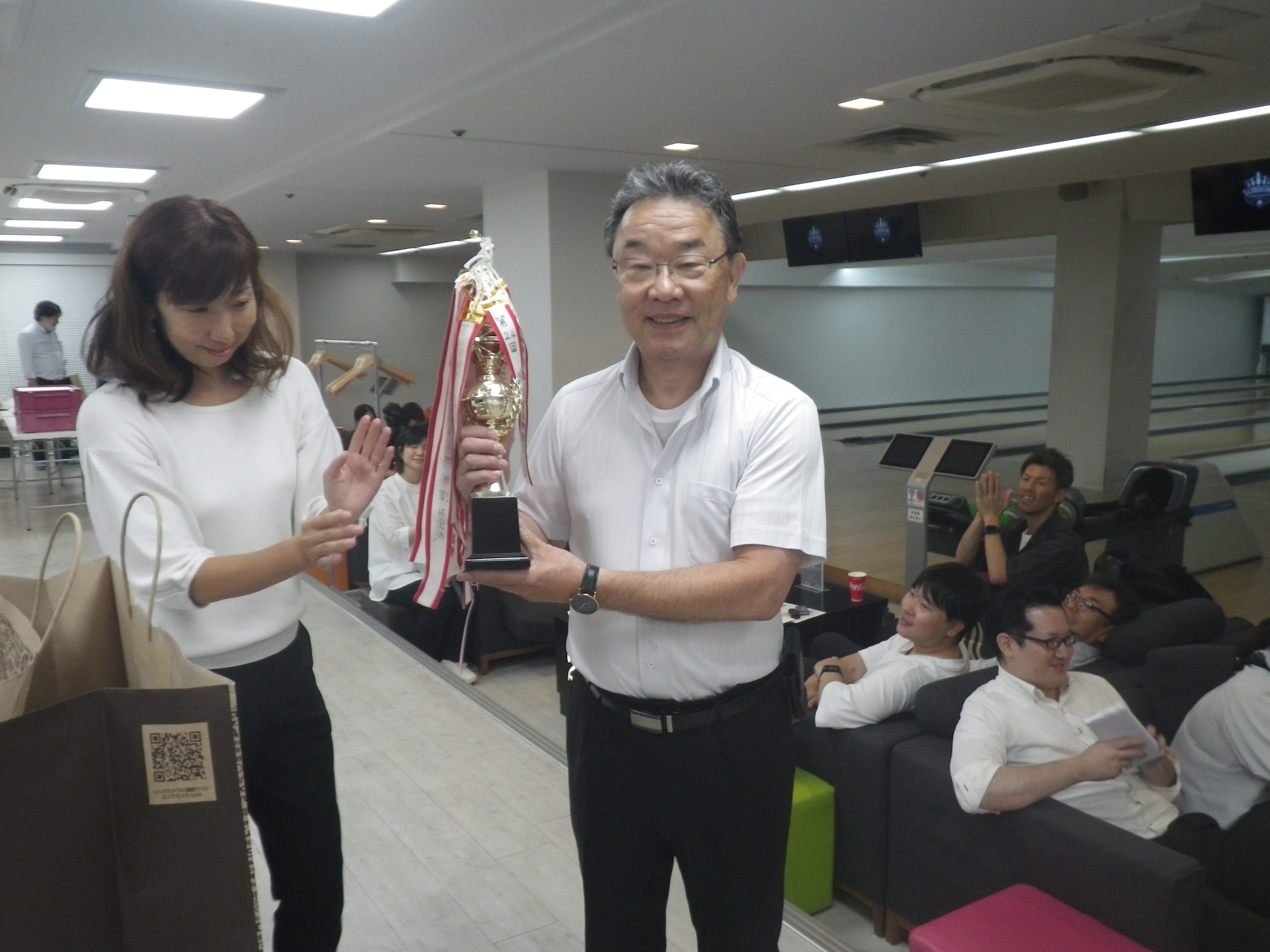 女性参加者には+35ポイント/1ゲームのアドバンテージが設定される中、土本技師長はー9ポイント/1ゲームのハンデを背負うことに。大きなハンデをものともせず、古希前の土本技師長が初優勝されました!