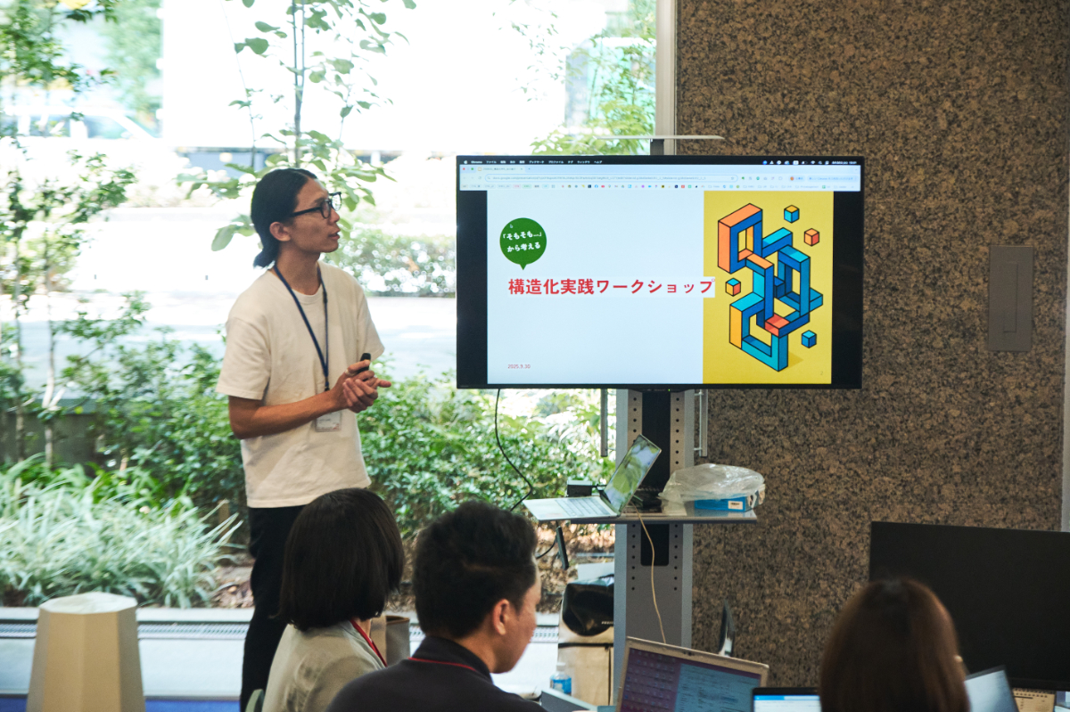 続いて取り組んだ、2つ目の実践を紹介します。《U35×経営層座談会 CFKのDOYA? 》から4週間後の2025年9月30日に、13名のCFK社員たちが1TTANフロアに集まり開催した《「そもそも...」から考える 構造化実践ワークショップ》。このワークが目指すことももちろん、CFKのナラティブと出会うことです。