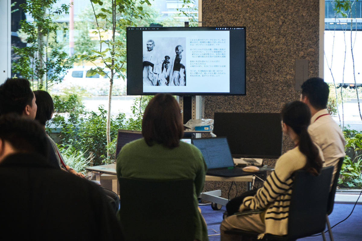 インドの自立と経済的自給自足を目指した活動の象徴である”ガンディーの糸紡ぎ”を挙げ、技術と知恵を高める大切さ、足るを知る生き方、主体性を持ち自分ごとに昇華する意欲の大切さがこのワークショップを通して見えてくるのでは、と。
