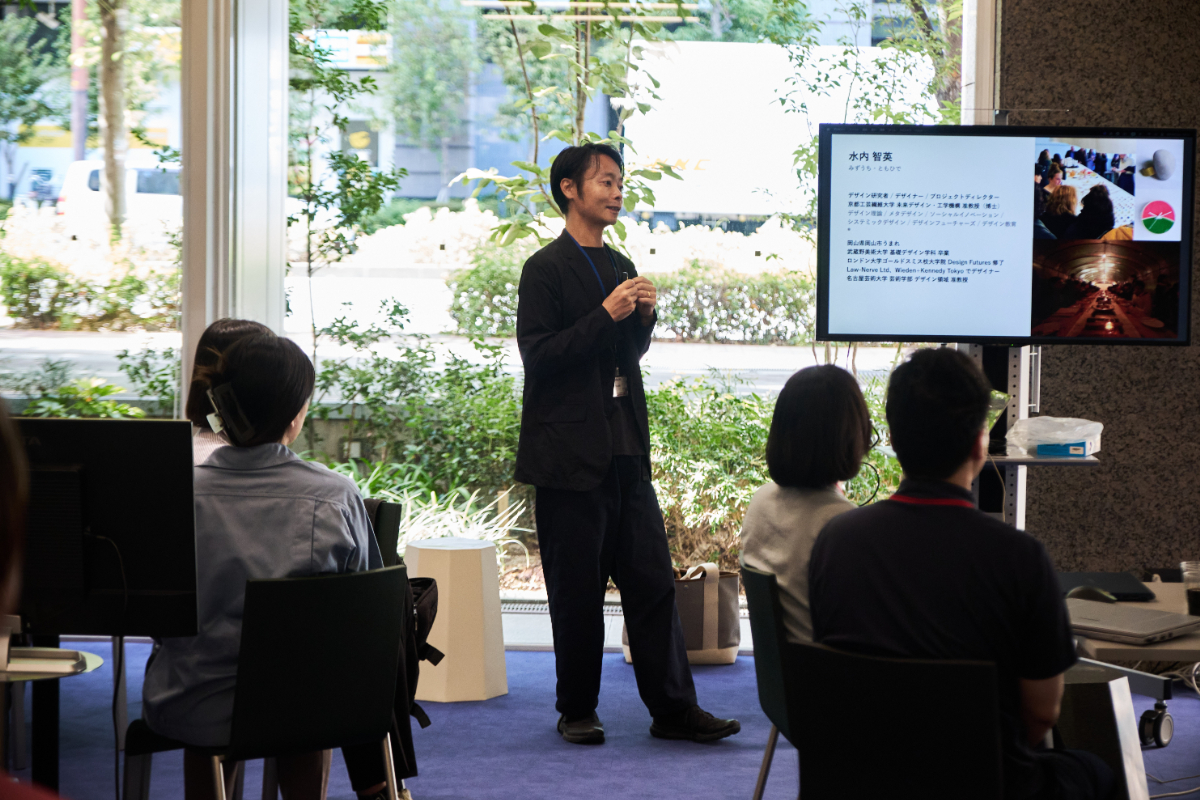 水内さんは、デザインを「社会の見え方を更新する技術」と捉え、複雑化する社会では“点の課題解決”だけでは本質に届かないと指摘しました。