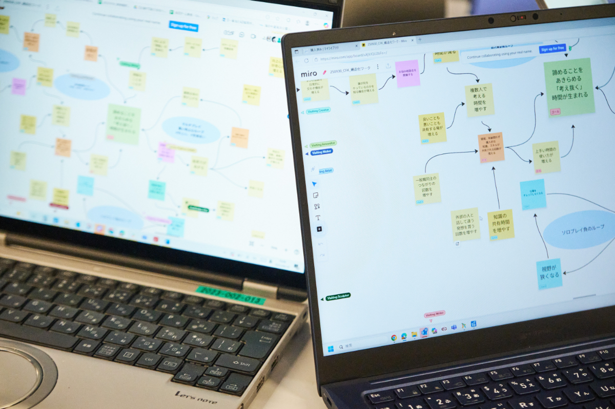カテゴライズすることで足りないプロセスが見えてくるようで、最後の共有セッションでは、「忙しさが減ると学びが増え、学んだ知識が業務改善につながる」「上司の支援が増えることで挑戦が増え、挑戦が成功体験を生む」といった“好循環の仮説”が各グループから語られ、社員自身が自分の働き方を構造的に捉え始めたことが伝わってきました。